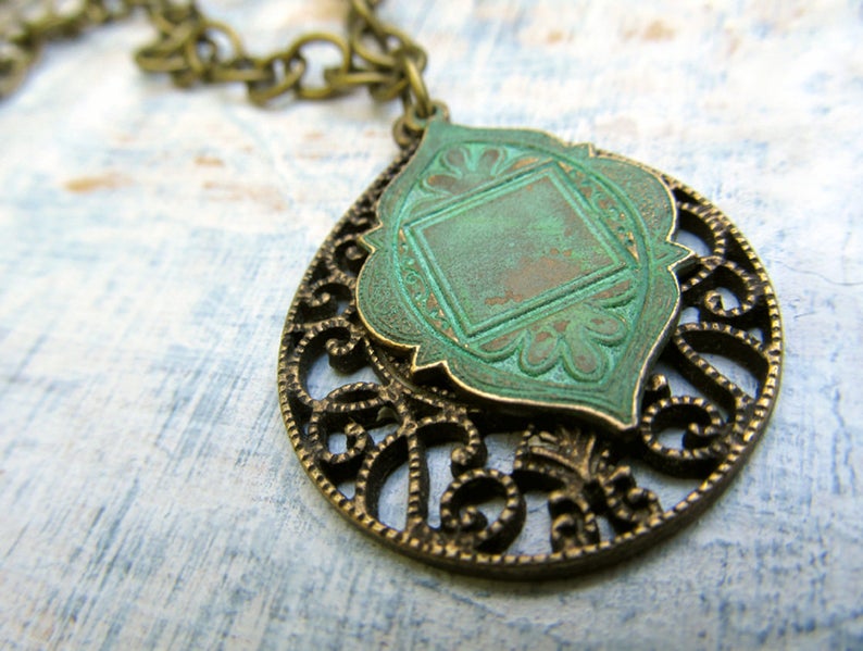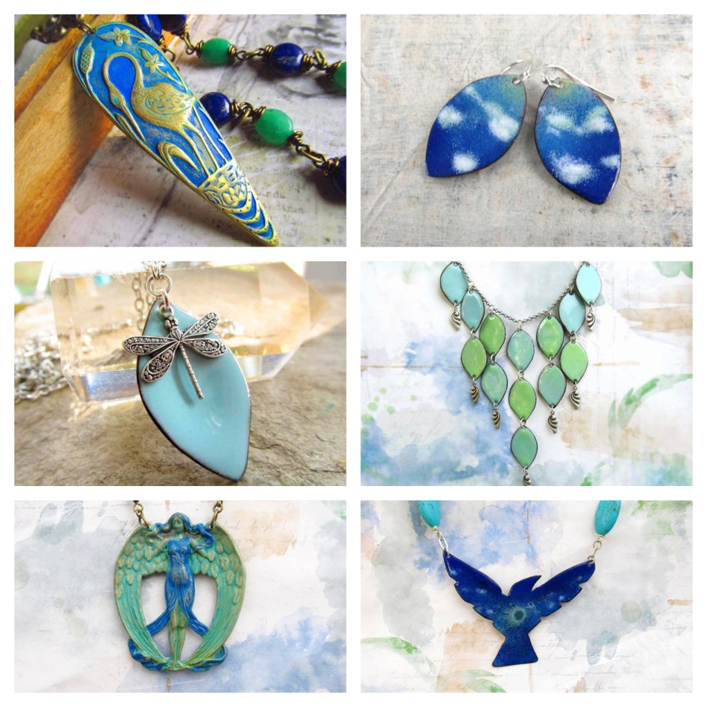 Our two main primary choices we offer is Patina Jewelry and Copper Enamel Jewelry. The Patina Jewelry is a process of antiquing a variety of charms. Some examples of these themes include animal totems, goddesses and Moroccan inspired designs.