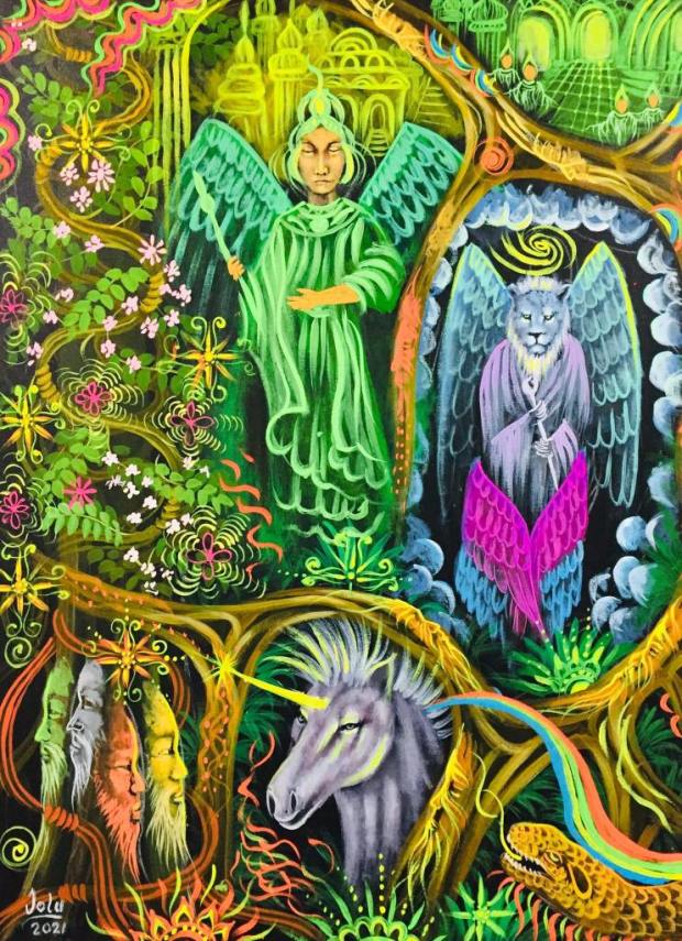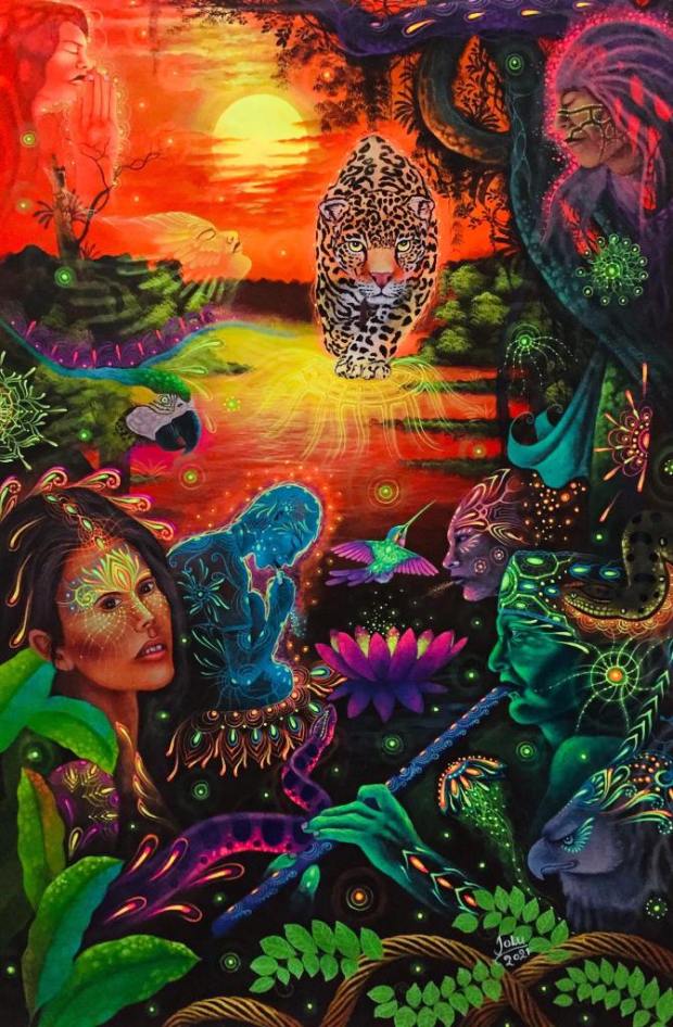 I am Jose Luis Vasquez Gonzales, known as JoLu Amaringo, I was born in the cradle of art on December 5, 1991, in the city of Pucallpa, Peru. At the same my celebrated grandfather, Pablo Amaringo Shuña, flew to Japan to present one of his well known exhibitions on International Amazonian Visionary Art
