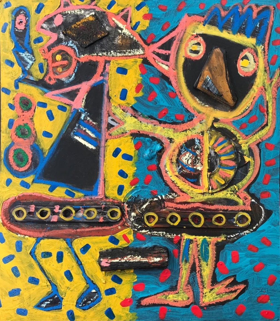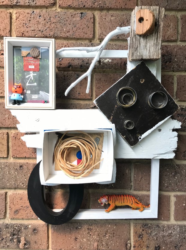 For me, the found and discarded objects and materials used in my art carry a promise and reminder of profound possibilities subsumed in everyday life beyond the superficial substitutions of a hollowed-out AI virtuality. That even everyday junk and detritus call out to be up-cycled and politicised demanding a place as emblems of a transformed future, and are always on hand as building blocks for a new world, is a source of joy and inspiration.