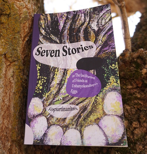 In Seven Stories or the (im) Parting of Friends at Unbanyokatulinys’s Eggs, readers are first immersed in a neurological realm, seen through the eyes of a relative of Casimer Maus. Maus, a German linguist, stumbles upon a new language during her vacation when she gets lost in Luweng Jaran, a cave in Indonesia. While in the cave, Maus found a chamber archway with engravings she copied.