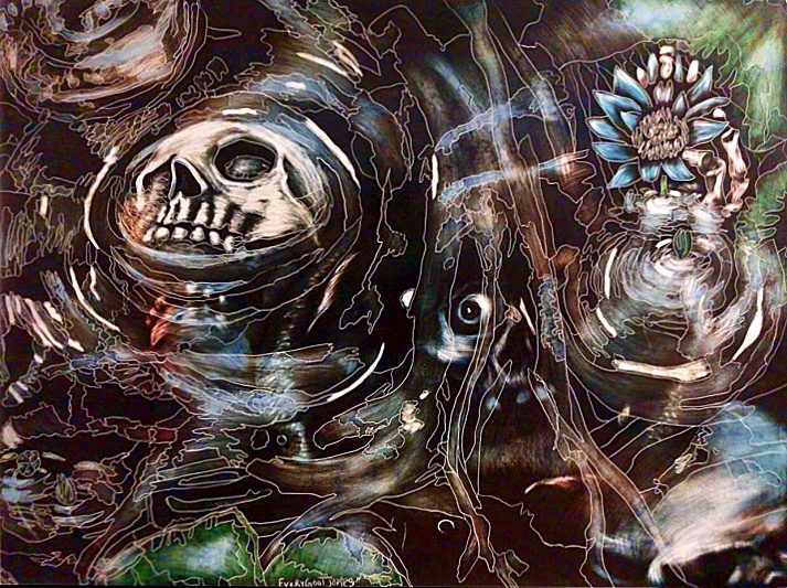 “Blue Lotus” 2021, Ampersand Scratchbord with India inks.