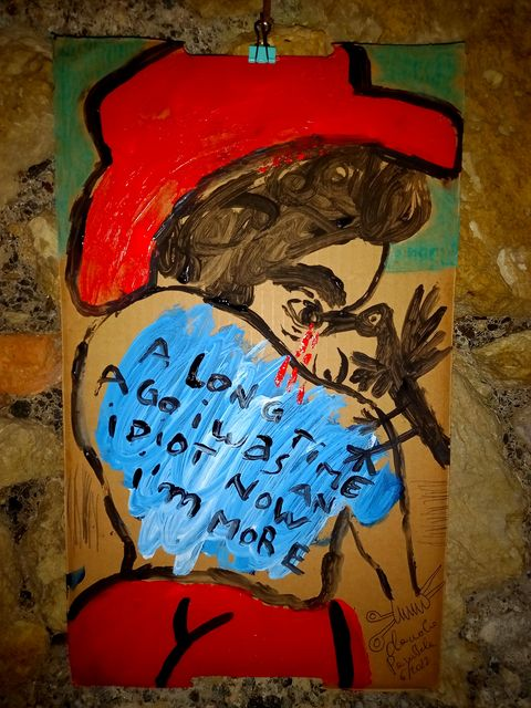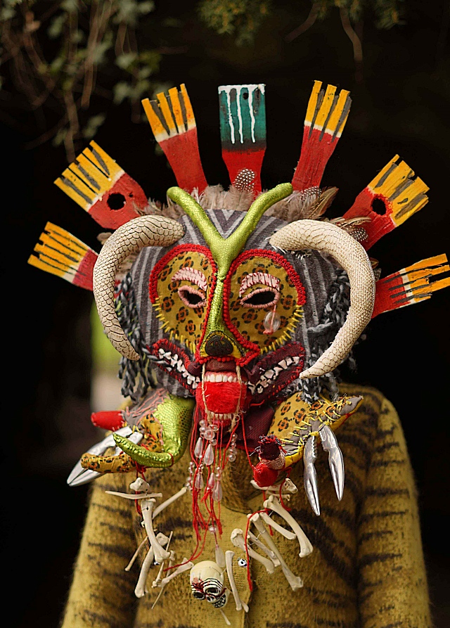 Ancestor, February 2024. Cardboard, feathers and found materials.