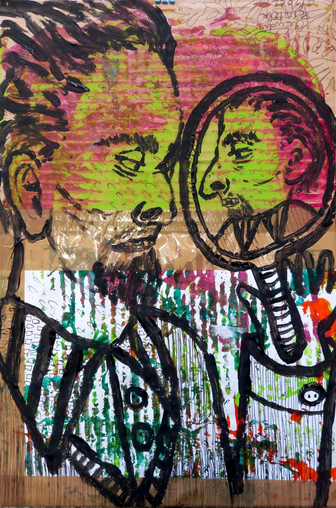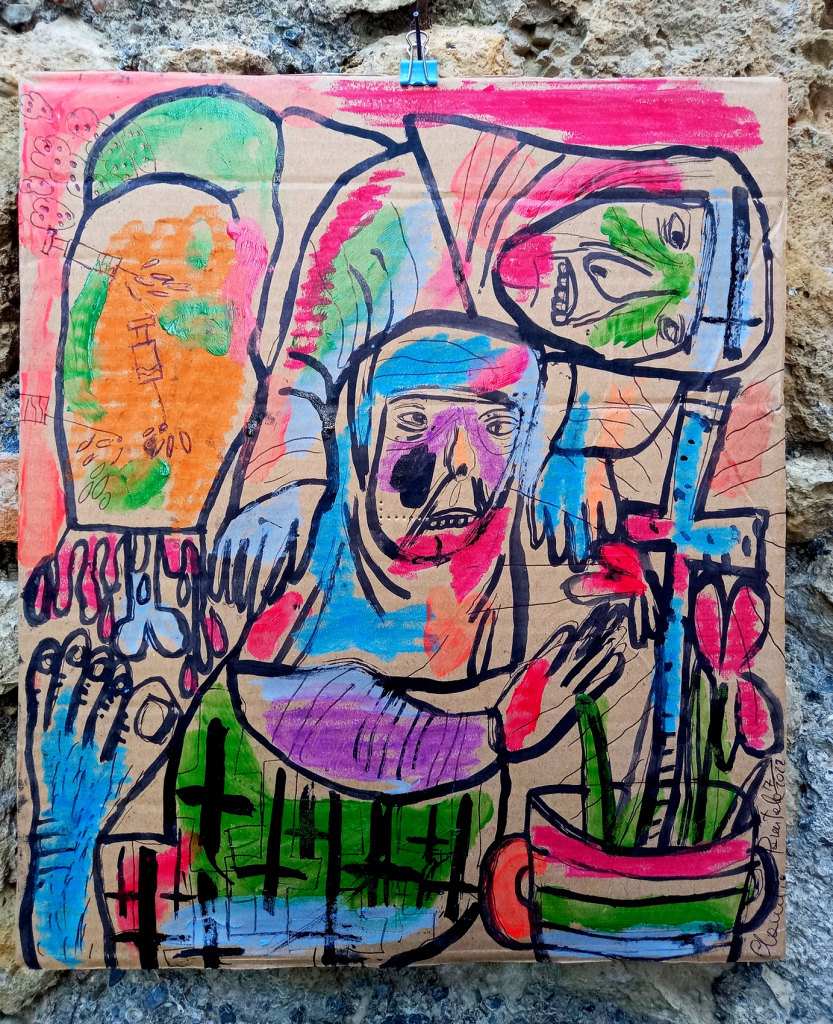 For me, the found and discarded objects and materials used in my art carry a promise and reminder of profound possibilities subsumed in everyday life beyond the superficial substitutions of a hollowed-out AI virtuality. That even everyday junk and detritus call out to be up-cycled and politicised demanding a place as emblems of a transformed future, and are always on hand as building blocks for a new world, is a source of joy and inspiration.