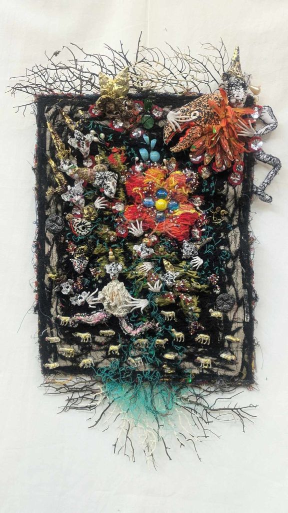 texture to her artwork but also focuses on the importance of sustainability in art and life. Her artistic practice reflects her respect for the surrounding environment and express its essence through her own