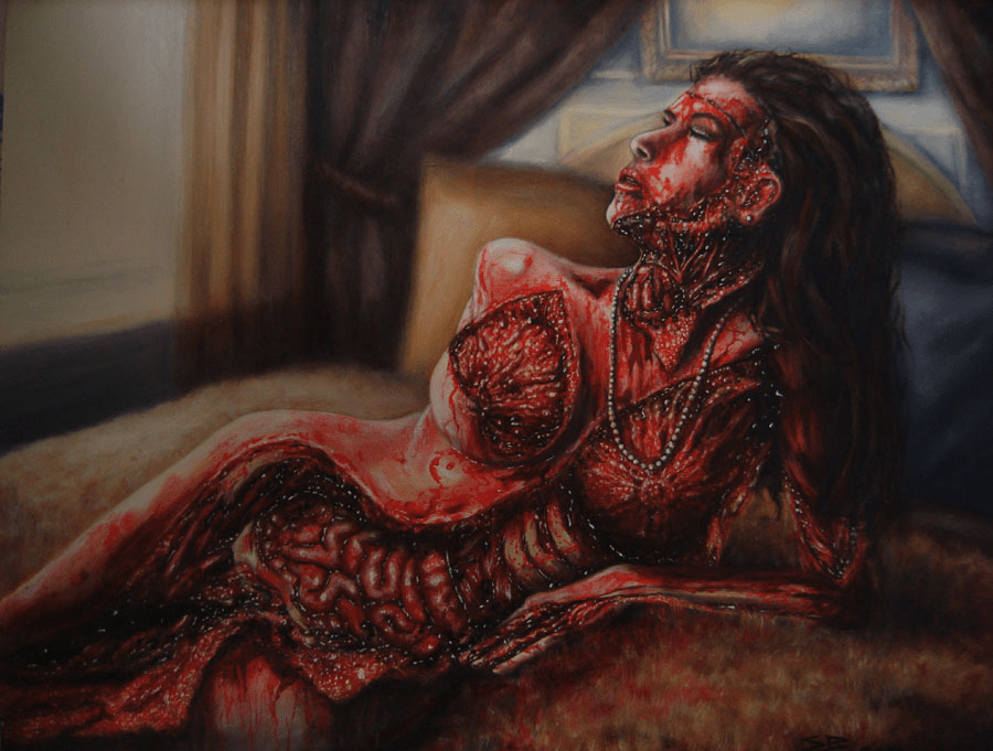 The scenes in Blac’s work are terrifying, creating the ultimate experience of body horror and disassociation. Her artwork also serves as a healing remedy for emotional trauma, as well as a catalyst for memories of sexual abuse survivors. One could hypothesize that Blac’s neuroaesthetics might have an influence on the hippocampus, the area of the brain that plays a crucial role in managing the experiencing self and the remembering self.