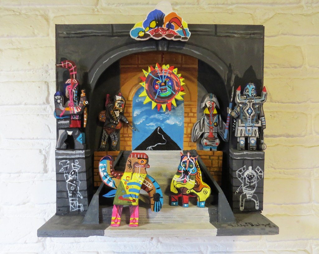 I don’t know how to write, I can put these meaningful sentences, which I will regret later, not a poet. Nor from what I have painted, a constant growth, the practice of a static that comes from colors and forms. A way of meditating, a way of praying, perhaps that is why I am building altars today.