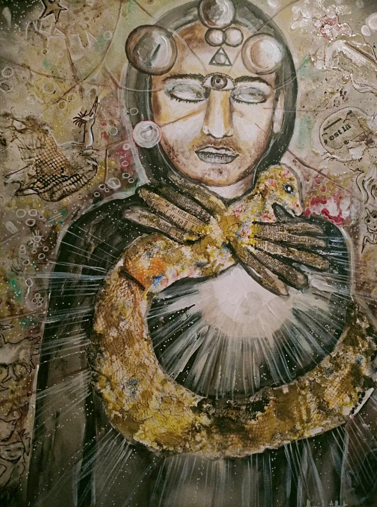 “Sol, el cuarto cielo” Acrílico sobre tela y madera. 50 x 50 cm 2023
