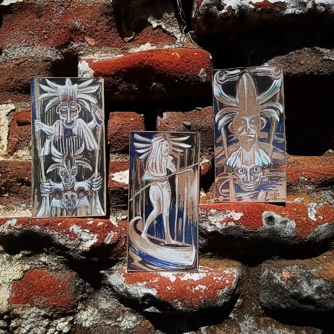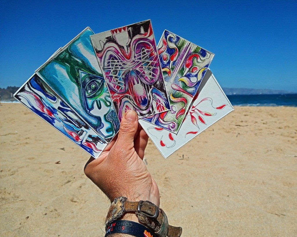 JUEGO DE NAIPES SERIE DE DIBUJOS RECIÉN TERMINADO. LÁPIZ Y TÉMPERA SOBRE CARTÓN PREPARADO, MEDIDAS VARIABLES. VALPARAÍSO, 2022.