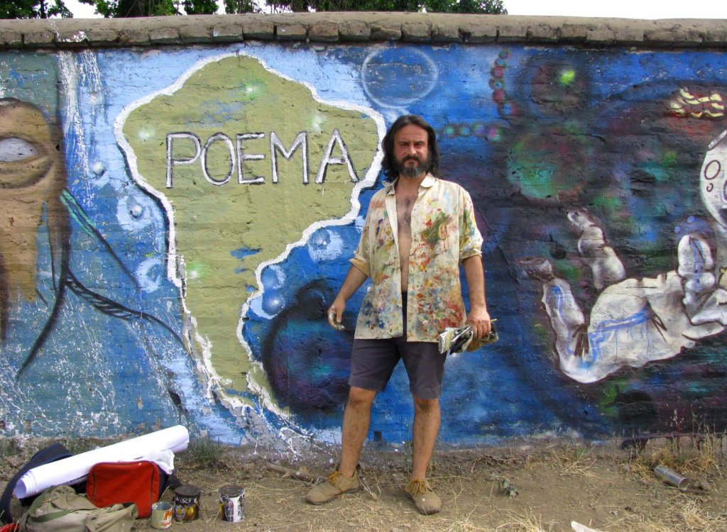 born in Valparaíso in 1968. After living in Patagonia and in United States product of a scholarship, his first painting exhibitions were date back to the nineties in Valdivia. Later he moved to Santiago and the Fifth Region, where his visual and literary work materializes in a body of work that addresses different forms of expression, such as painting and drawing, experimental and documentary video, visual poetry and muralism, with public art projects installed in Santiago, Valparaíso. As a visual artist he has exhibited his paintings in 15 solo shows and in more than 60 group shows in Chile, Europe and the United States, and his poetic texts have been published in regional, national and international poetry collections, his work being awarded in different state funds for artistic creation such as Fondart, Cntv, Fondo Carnavales Cultural Centers of Valparaíso, among others. Currently the painter lives and works between Valparaíso, Santiago and Concón, where he develops his artistic projects and teacher training, being in charge of university graduates, painting and mural workshops, becoming a teacher for generations of students and artists who have worked with him.