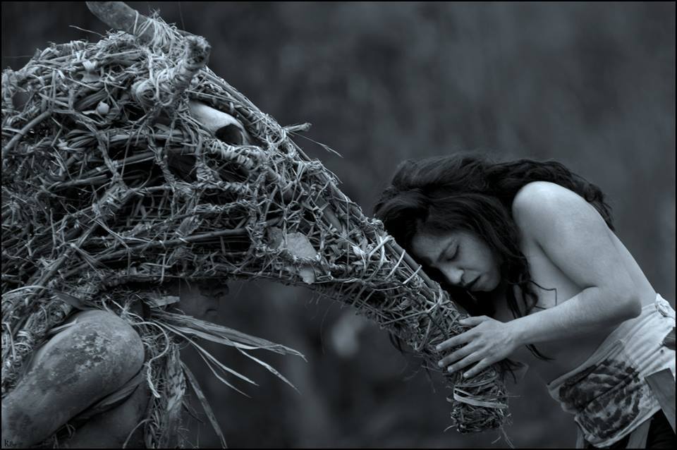 BODY PAINTING OF REAL AND INVENTED BEINGS, IMAGINED, TORN FROM THE BORDERS OF DEATH (AND OBLIVION) IN A FORMAT OF RITUAL REPRESENTATION THAT THE ANCIENTS KEPT UNTIL THE ARRIVAL OF THE WHITE MAN AS A CEREMONY OF PASSAGE FOR THE NEW GENERATIONS OF INITIATES.