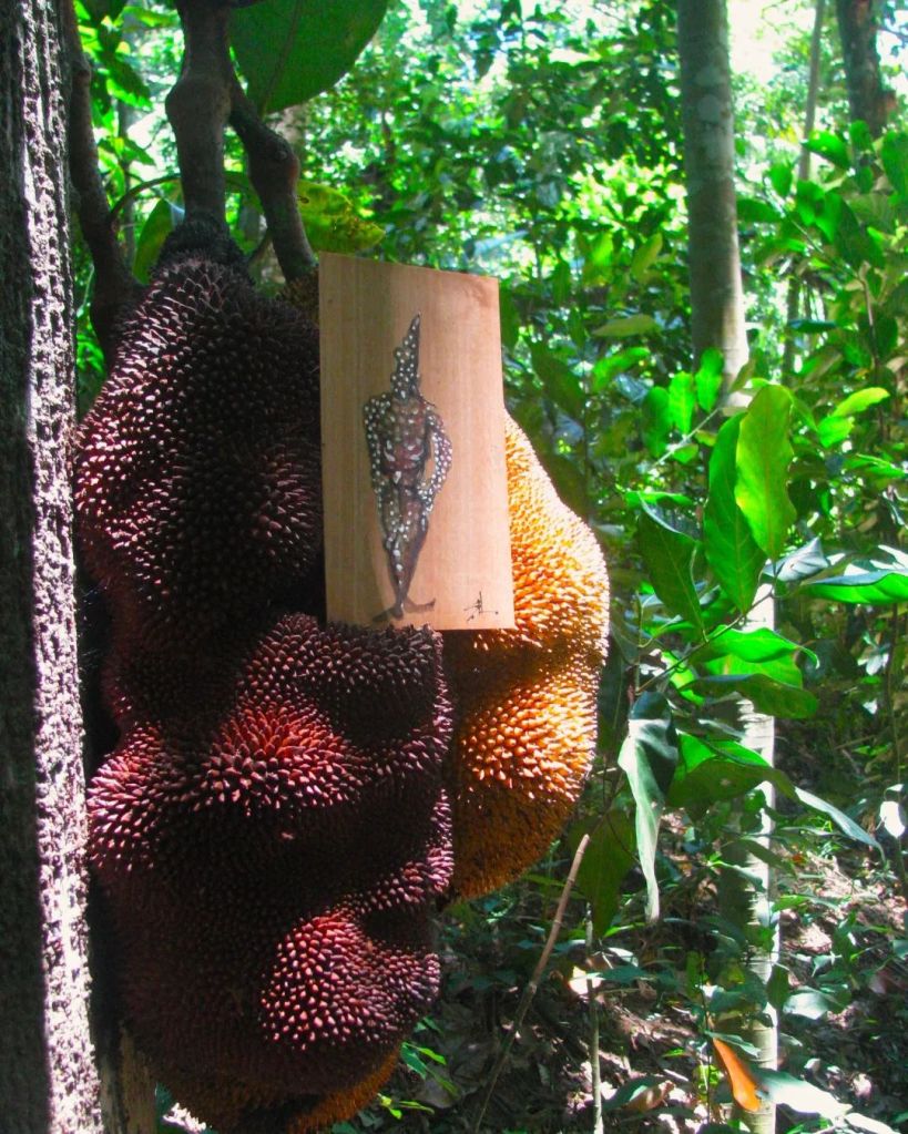 TRÓPICO DE FUEGO DIÁLOGOS COLABORATIVOS ENTRE NATURALEZA Y ARTE. INSTALACIÓN TEMPORAL EN EL JARDIM BOTÂNICO DO RIO DE JANEIRO. PINTURAS DE LA SERIE MI PEQUEÑO EJÉRCITO SELK´NAM, PROYECTO RÍO DE JANEIRO 2023.