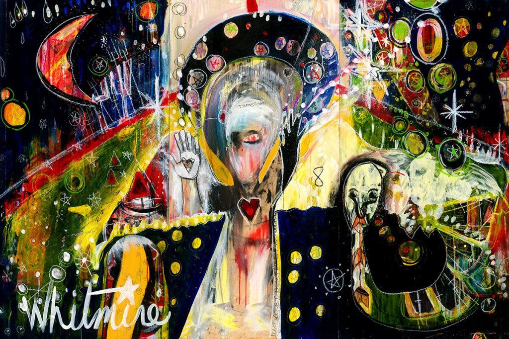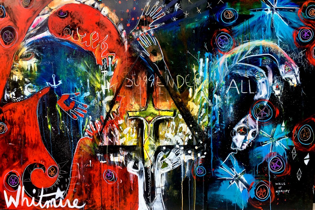 What comes next often depends on the energy in a place, or time, or the viewers themselves who I feel pull the work through me. Over a period of 6-12 hours, sharp images, texts, and shapes are revealed as profound messages. Through abstraction, the art becomes the Oracle and represents the literal and metaphorical power of transformation. My art is in a constant state of service.