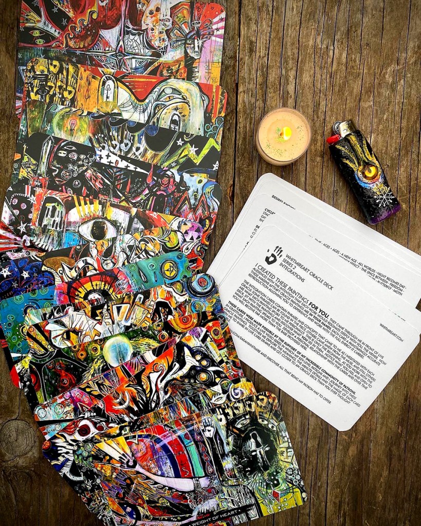 When the pieces are ready we work hard to meticulously scan them at high resolution and make them into Oracle cards. I have always believed that these images are for others and sharing them is important as meaning makers for others. I release new each series of cards as they become available. Currently series 1 + 2 are available and I am painting pieces that will become Series 3 + 4 now.