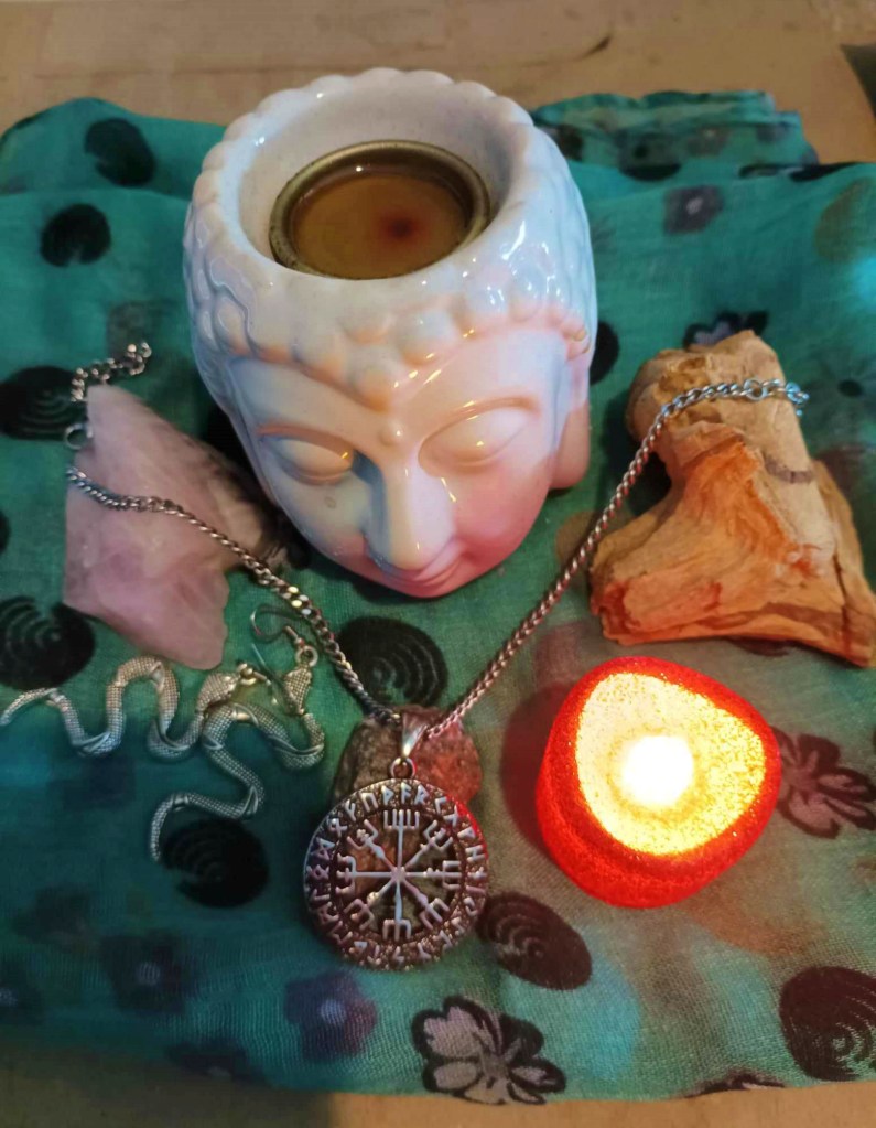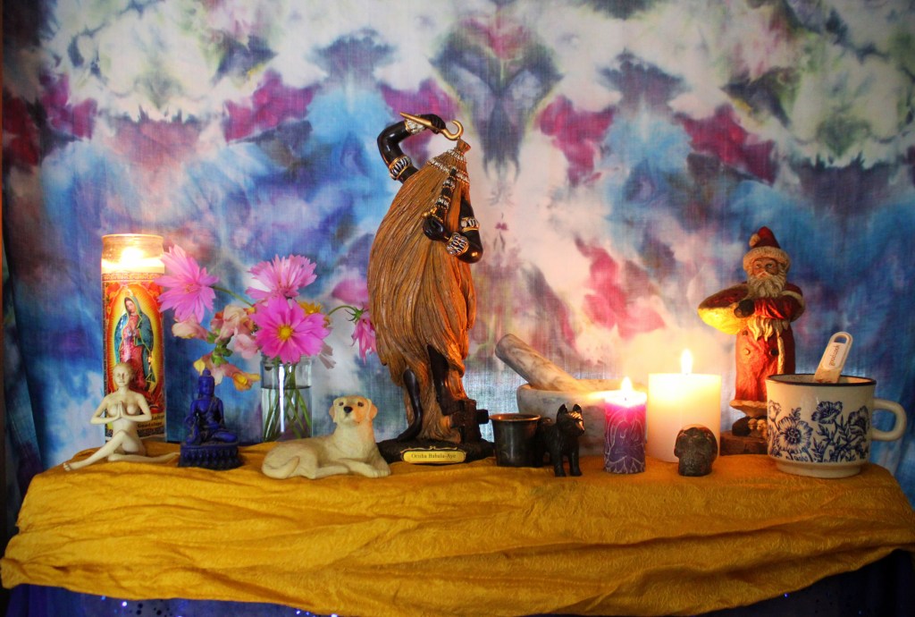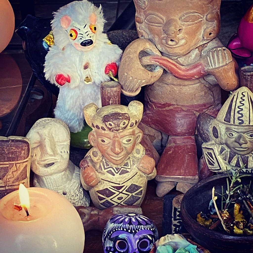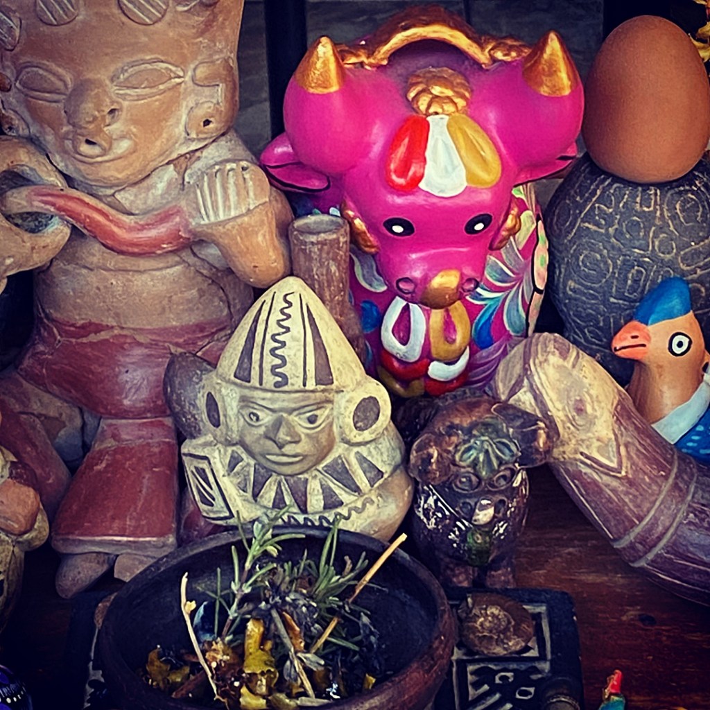 I began collecting objects for our altar in 2020 during the Covid pandemic. I selected figures that embody different archetypical aspects of growth and limitation. The process of recovery is sincerely magical. These mysterious qualities remain a focus on the altar. They play a vital role in the background as well as influencing the subconscious in healthy ways. Constructing an altar helped me be attentive to the belief needed for healing.
