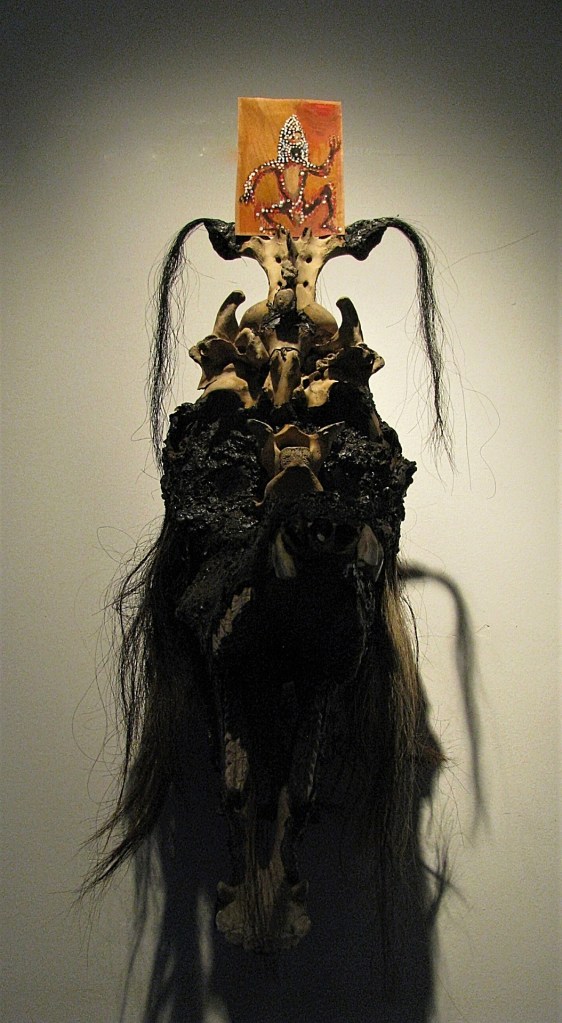 The presiding spirit in my studio is a wonderful stone lithograph by Rikki Ducornet, Histoire Naturelle I, kindly given to me by Guy Ducornet some years ago. Beneath it are a number of pieces I made between 2001 and 2015. They are the product of chance finds, dreams and fleeting inspirations. All relate in some way to the natural world, and to archaic notions of male/female energies.