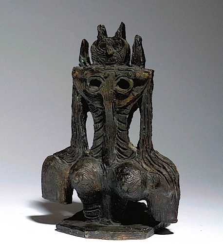 Kuyu Crest Head. The two lizards on the head of the Kuyu sculpture could represent spiritual guardians or protective spirits, as lizards are frequently associated with protective powers in many African cultures