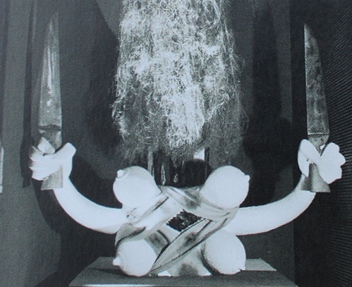 The Hair of Falmer, an altar created by Claude Tarnaud, Michel Hertz and Francis Bouvet following a design sent by Wifredo Lam from Havana for Le Surrealisme en 1947 exhibition held at Galerie Maeght, Paris, 7 July-30 September 1947 original photo Denise Bellon. Expert from The EY Exhibition: Wifredo Lam. Tate Publishing figure 33, page 211 used and intended for educational purpose only