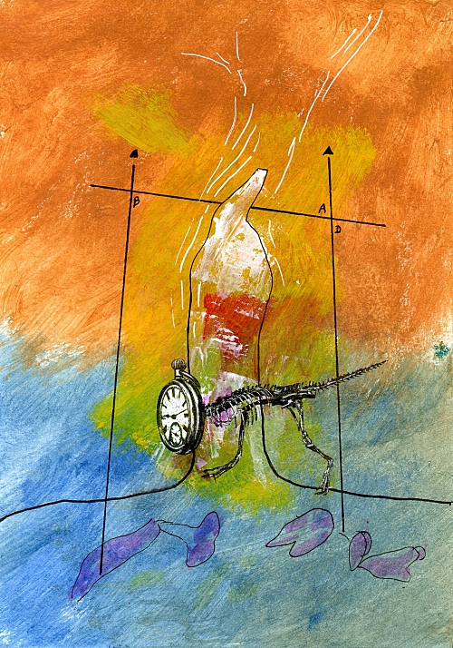 Those who have been there before, have easier access to other ways of connecting with time and history, and therefore, with the future. In our normal non-psychotic lives before our climate awakenings we navigated on a kind of hidden clock and common calendar in which this morning is nearer to us than last week, and last year nearer than thousand years ago. But under climate change as well as in psychotic life temporal experience is different. Our time frames of our past and of human history explode into vast geological and cosmic times. The events of these decades of climate disruption resonate with those of 65 million years ago, when the dinosaurs became extinct. The pace of human history fuses and is confused with that of natural history, and our minds lose themselves and fall back in the unthinkable fantasms and realities of dark time-spaces of the deep past.