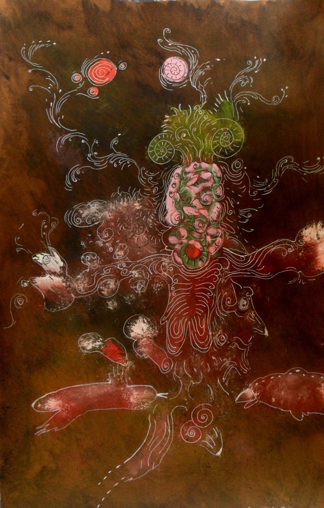 Primordial circulation approaching from a past spring, acrylic on Fabriano paper 250 gm. 35x45cm