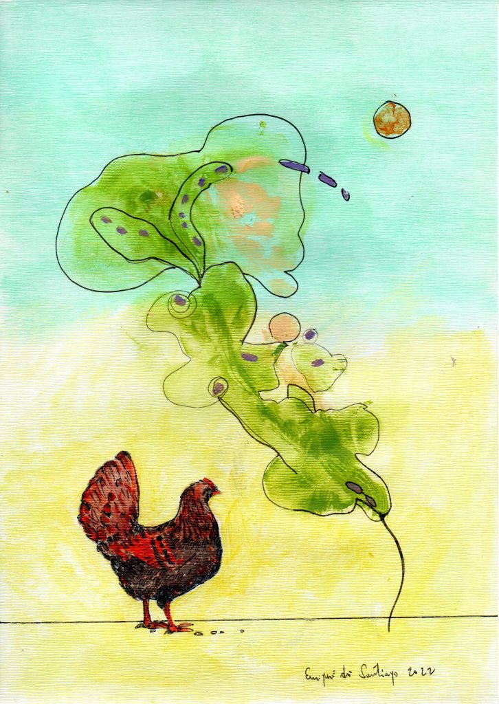 EROS PHASIANIDAE Yo And she saw the chicken rise from the ground a brilliant and ectoplasmic epiphany and she remembered the words of the feathered prophets: “before the primordial egg was the verb” and the pyrrhic evolutionary expedition embraced me so necessary and indeterminate where we are more but under sheds and I saw the grayish uncertainty that shakes my being h = 6.626 0693 (11) x 10 – (34) J. s = 4,135 667 43 (35) x10–(15)eV. s and the beast arose from the miasma without the feminine warmth it was in the offensive of the arches thousands of years ago on the Cartesian line of Har Meggido under the law of y = m x + b and those tears originated at 32°34’59″N 35°10’56″E. II huge old stars leaning out on the horizontal cobblestone sheets were dictated by an ancient manual of glorious epic forms where I did not read the cunning locks and from there lights fall like eagles that are suspended in front of your pale fortifications and despite the fact that I descend without air I cling to the desiccated edges of this abyss turning away from the waves of floral promises with summer mentions that anoint you. Thus the amaranth silence returns to rock the star and like the silent lymph you seek to break beyond the fundamental shell the one that you got to know in a primitive way in the sweet rooms of belief.