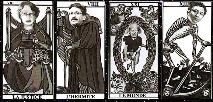I think it is a language in itself, another kind of language. But I also believe that its divinatory character is a construction. When Visconti decks appeared in fifteenth-century Italy, their intention was not to guess but to memorize the hierarchies and their functions. Divination as such is much older. The current tarot brings together many characteristics of memoizable hierarchical archetypes that we now identify as tools for self-knowledge. I believe that the tarot can help us to know the things that we don’t know that we already know. It is like walking at night along a path full of brambles but illuminated by the soft glow of the full moon