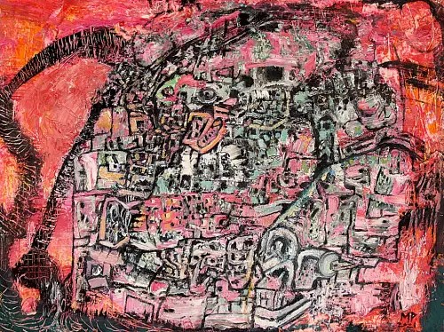 “My concern is the human figure as a feeling of primitive and irrational states, whose main point is the heads, universal thought of the creation of man and center of the universe. All this led to a mutation of the plastic and pictorial language”. Rene Ortega Villarroel