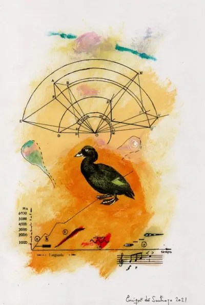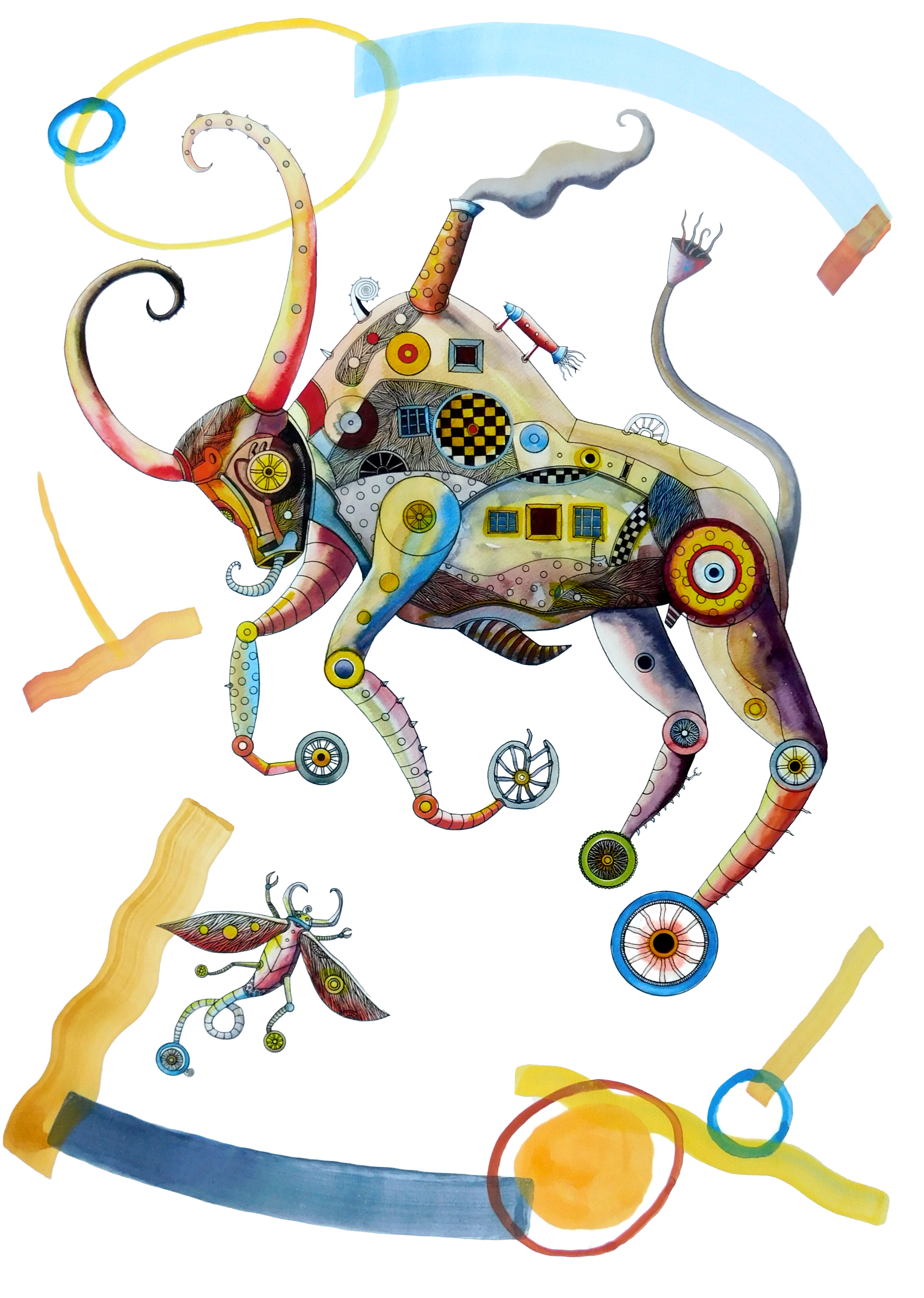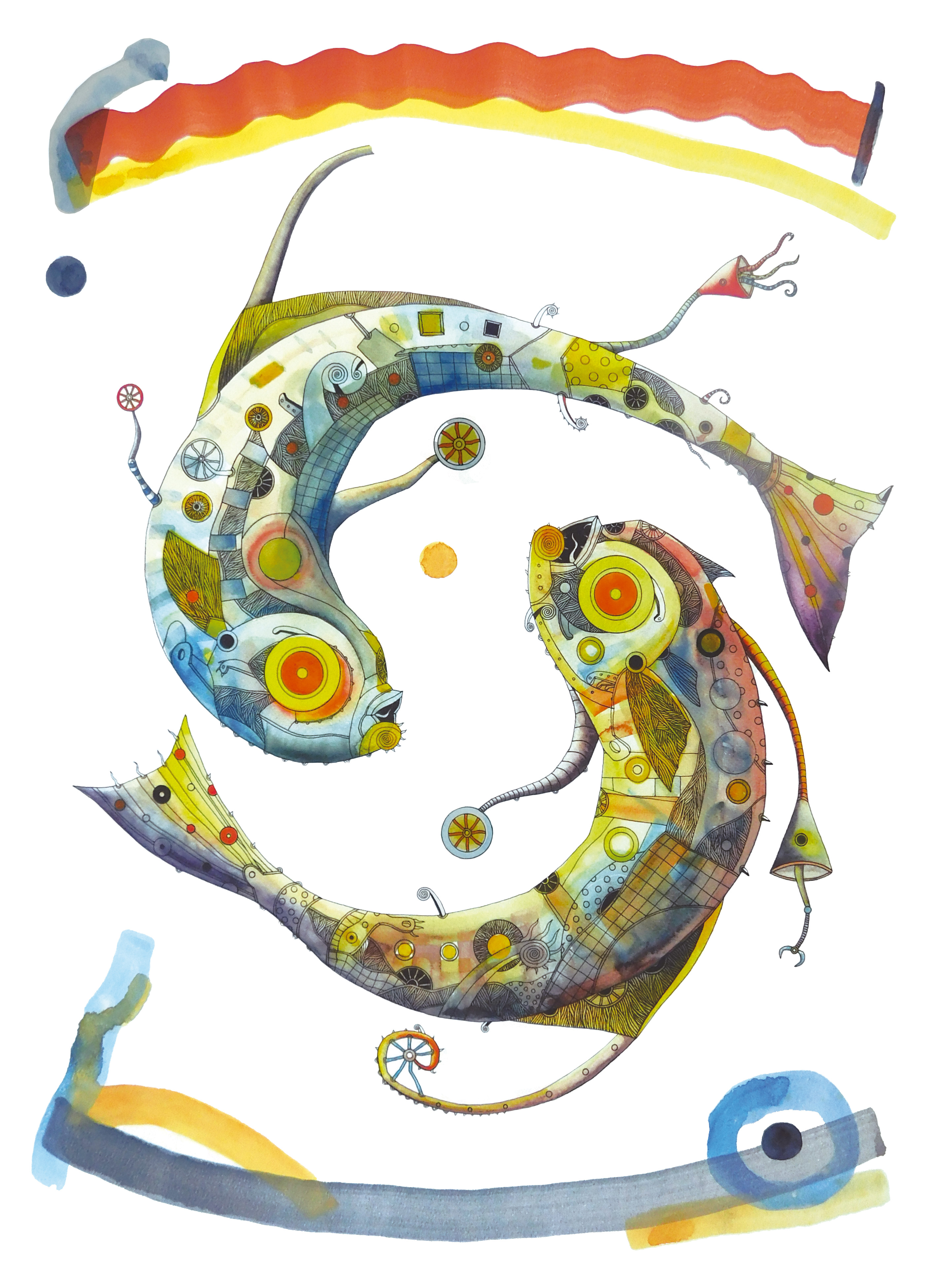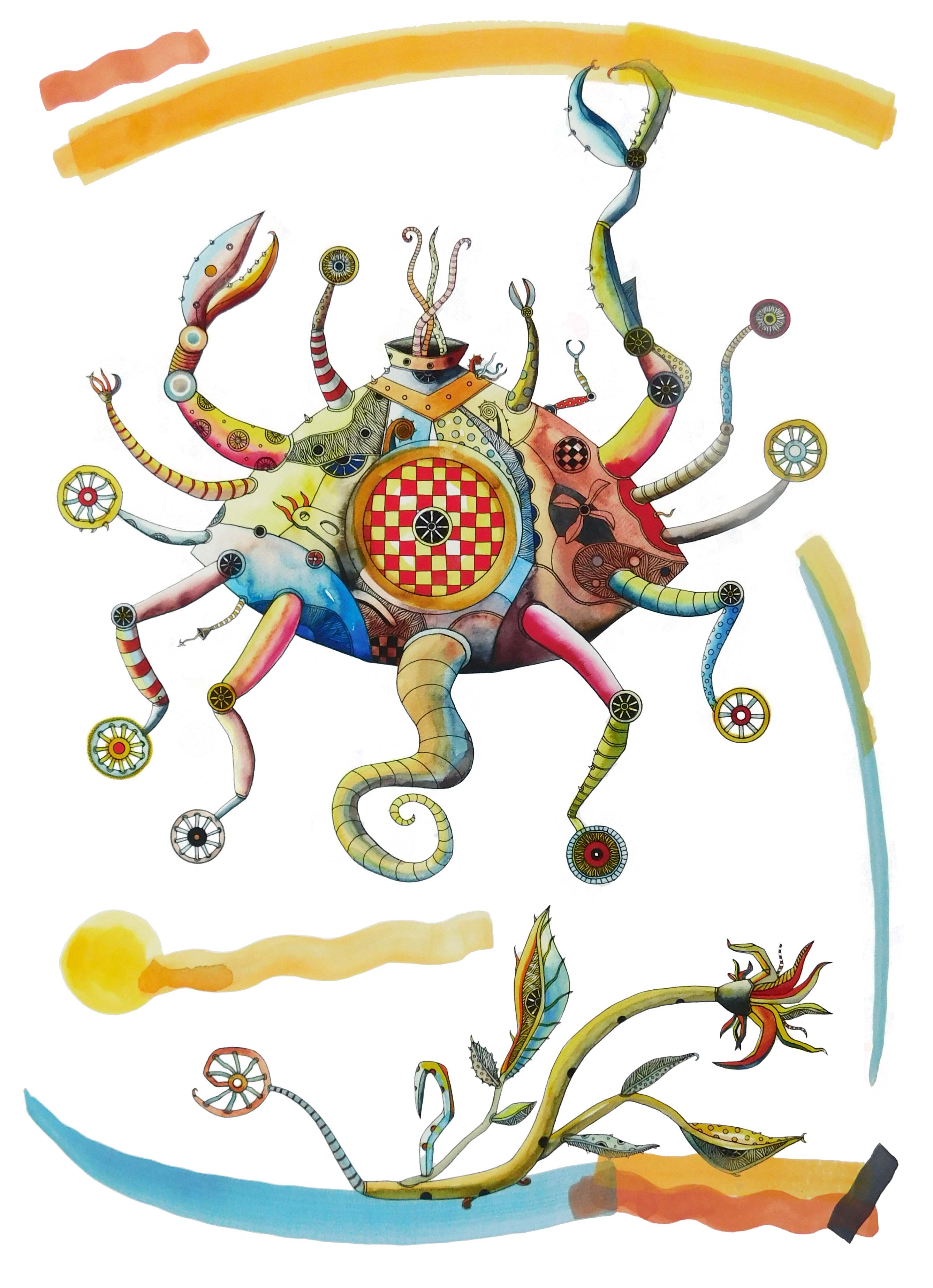 Handmade Paper, feather, gold leaf, dyes, ink, acrylic pens.