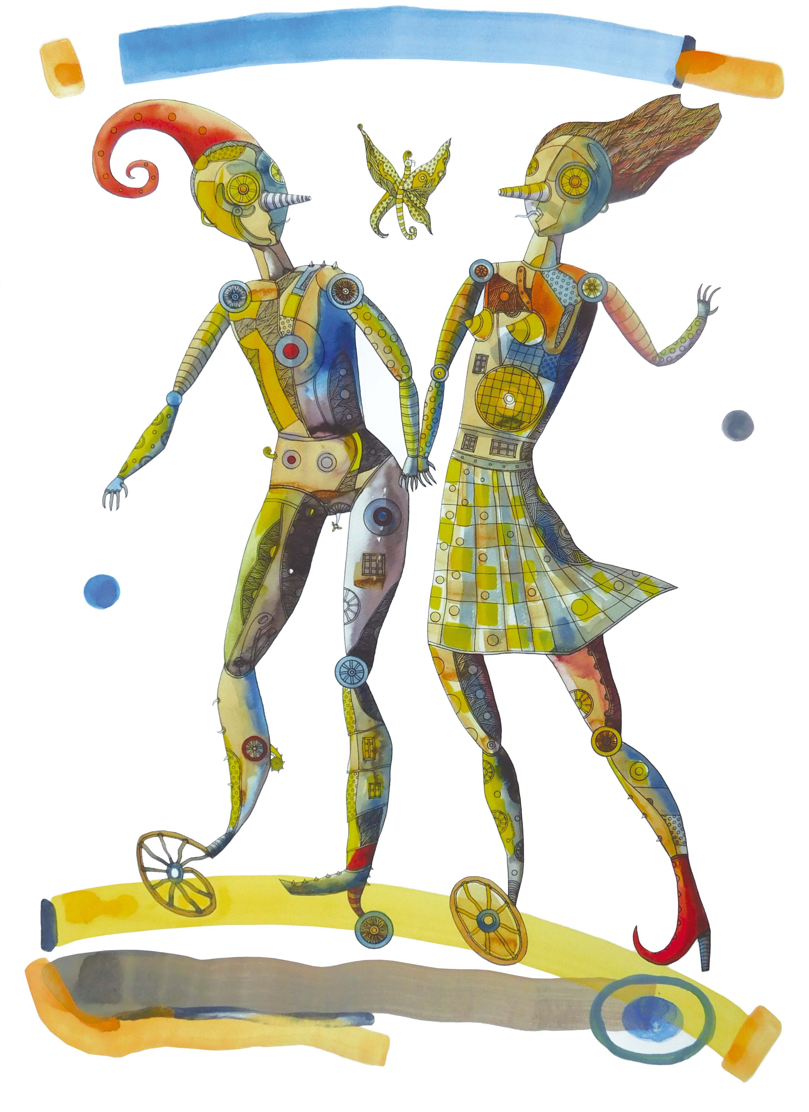 Abstract Human and Islamic pattern. Handmade Paper, dyes, rust, gold leaf. Dimensions with frame: 67.5 cm × 83 cm Production Year: 2019.