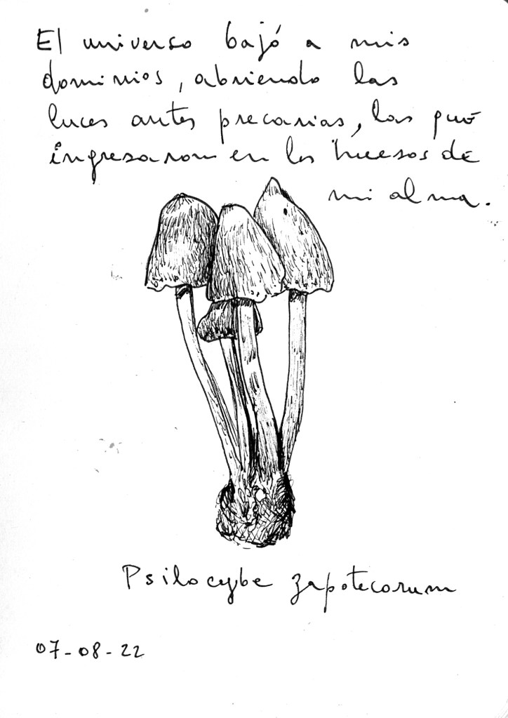 Specifically, the so-called mushrooms of the Psilocybe family caught my attention and their role as sacred psychotropics (hallucinogenic or neurotropic) in vast cultures, with records of this use, from the Paleolithic (Siberia, Sahara and Spain) to the present day. The power that these have to expand the mind and open unsuspected portals is well known, and that it has a certain analogy with what Eliphas Levi explained, regarding the 3 states to know the secrets of the universe, such as the embryonic state, dreams and delirium.