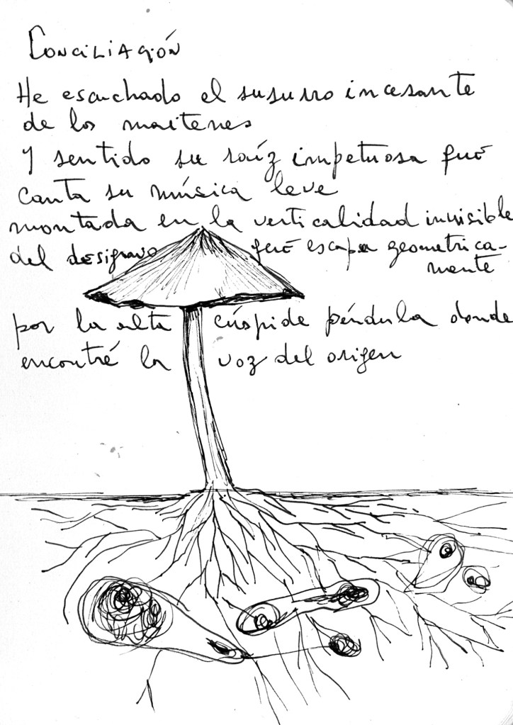 CONCILIATION There are times when all the accumulated anxiety and effort they rest in the infinite indolence and repose of nature. Henry David Thoreau I have heard the incessant whisper of the maitenes and felt its impetuous root that sings its light music mounted on the invisible verticality of design that escapes geometrically by the high pendulum cusp where I found the voice of the origin so I became a body in the bark adding myself to the essential channel that pulsates in the hollow where the bird flies with his outburst of winged love that awakens the astral eyelid and light the new dawn.
