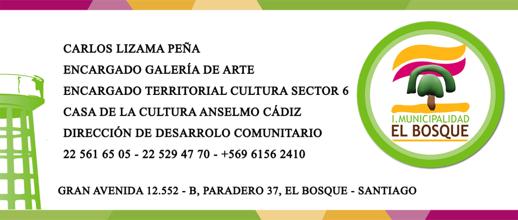 Carlos Alberto Lizama Peña is a prominent Chilean Visual Artist has stood out in various national and international exhibitions, currently works and develops his work as a cultural and educational manager in the House of Culture of the Commune of El Bosque.Co-executor in the FONDART Project “Open Sky Gallery South Zone Cultural Corridor “Work Production Workshop Coordinator”. March – September 2008 Mosaic Art Mural Program, El Bosque, Artistic Director, December 2006-February 2007 Murals Program on Facades of Villa la Pradera and Villa San Fernando, Quilicura, December 2006-January 2007 Painting classes, Anselmo Cádiz Cultural Center, Commune of El Bosque, 1998 to date La Familia Foundation, Huechuraba, Painting Classes, 2002,2003,2004 Trigal Special School, Huechuraba Plastic Arts Classes, 2003 Painting workshop, Cristo Vive, Huechuraba April-December 2002-2004 Drawing and painting classes, Mun. from Huechuraba Oct-December 2002 Painting workshop, Municipality of Huechuraba October 1997Oil painting classes, Mun. of Quilicura October and December 1997 Muralism Workshop, Millahue Foundation May 1996 Extracurricular Painting Classes, Sta Teresa High School, Mun. of Independence, November 1995 – January 1996 Mural Art Project Paint your Paint, Mun. of Conchalí, June – August 1996 Paint Your Neighborhood Mural Project, New Orleans, USA October – December 1995 Painting Classes, Youth Development Program, Conchalí, September and October 1995 Artistic Workshop, PRODEMU Foundation, Commune of La Granja Esane Professional Institute, Graduate Assistantship in Advertising Graphic Design in Drawing and Color Branches, 1988Curatorship of the Local Gestures I, II and III Exhibition, Art Gallery, 2005, 2006, and 2007 Guillermo Nuñez Art GalleryLocal Gestures I and II Exhibition at Contemporary Art Gallery, Quilicura, 2006 and 2007 December 1998 Work “Cantata de Santa María de Iquique,” Fondart Project, El Bosque Cultural House November 1999 Play “Nemesio Pelao, What has happened to you”, directed by Andrés Pérez October 2000 “Chañarcillo,” directed by Andrés Pérez, Antonio Varas Theater April 2000 “The Exodus,” Chinese shadow play of his own creation October 2001 Chinese shadows for the play “El Golpe,” directed by Eduardo Saez, Teatro Novedades (selected for Teatro a Mil 2002) August-September 2004 Work ”1907 The year of the black flower’‘, La Pato Gallina theater company, pictorial work of curtains.