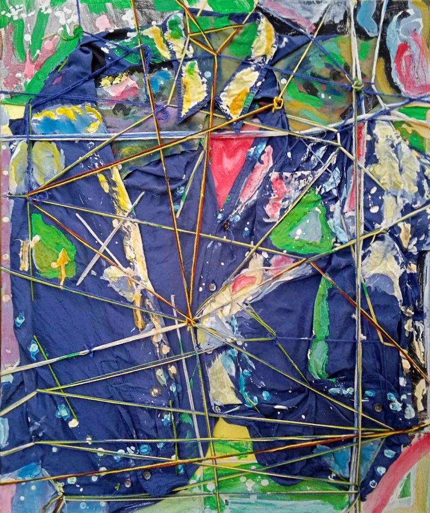 La materia sustancial de mis obras las constituyen materiales orgánicos mutables provenientes de la natura-leza y prefabricados por la industría humana. En la unión de estas dos naturalezas está el magneto. Savia fito morfa, sabia antropomorfa. El medio ambiente me proporciona los medios, el medio ambiente urbano, en las calles tomadas por recicla dores. Todos los objetos son encontrados, escasa compra de materias para hacer obras de arte, sólo basura, desperdicios con ene energía humana. Cartones, lanas, vidrios y maderas; papeles, hilos, pinturas, vidrios, telas y marcos. Reúno elementos desperdigados, subproductos de la industria y la codicia humana. Doto a cada parte de la obra con una condición magnética, esto hace que de diversos elementos surja un sólo. Mix de materiales considerados de nuevo para la aventura creativa, reciclador de los que reciclan cachureos. Materiales abandonados por el sistema educacional, obras de arte anónimas, retratos de adolescentes, papeles pintados con acuarela, todo es obra de arte antes de que yo la asuma como medio para elaborar otras ideas, me siento como un borrador, como si fueran partes de un muro pintado donde llega otro que pinta y tapa lo que ya está pintado, mucha obra de niñas y niños, dejo muchas veces los colores o algunas formas, se puede decir que mis obras son coproducciones, alucinaciones de seres humanos de Chile.
